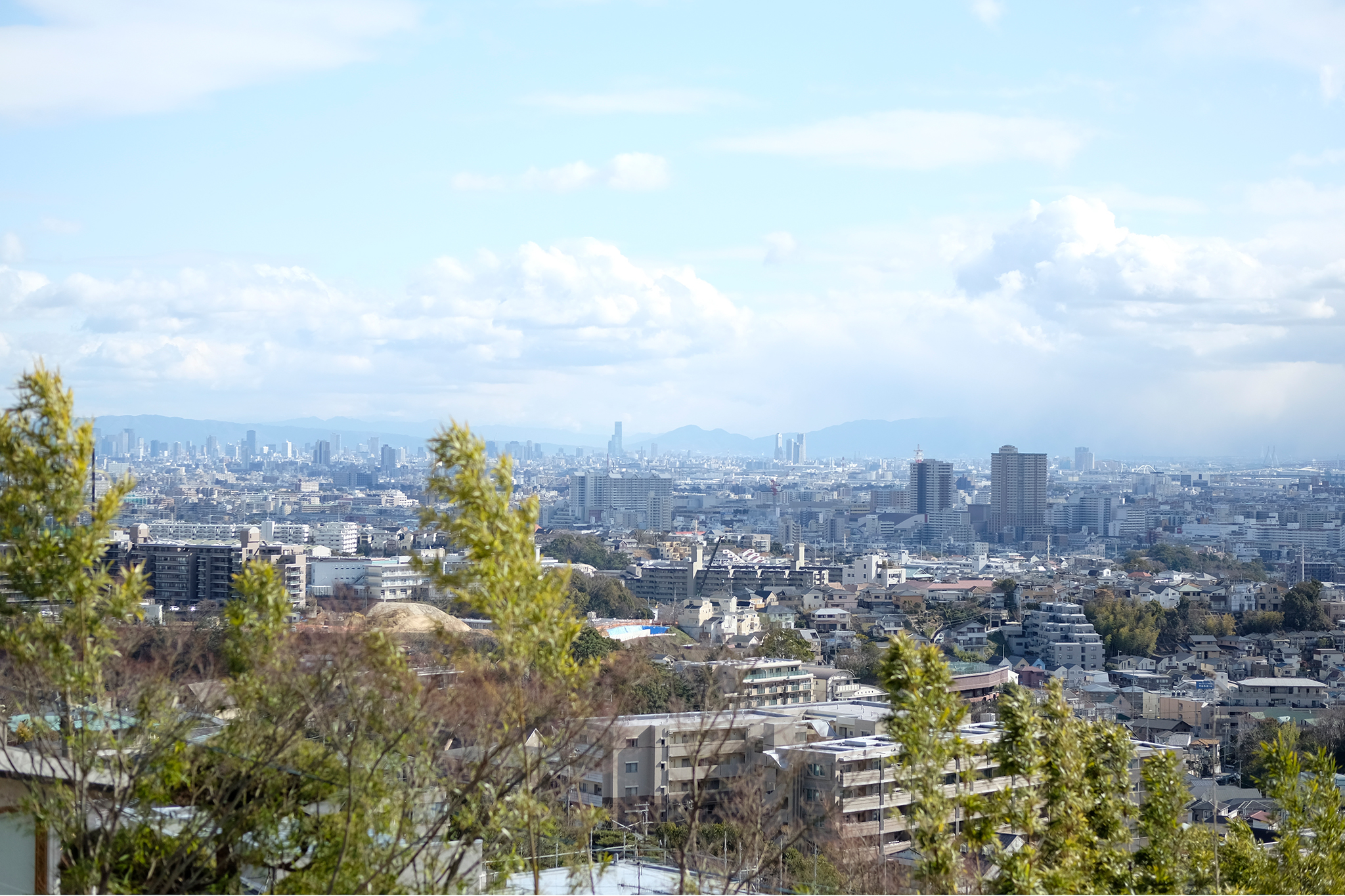 真ん中に見える高い建物はなんとあべのハルカス!良い眺め!空気が澄んでいる冬は遠くまで見渡せて綺麗です。春になると黄砂やら花粉などでかすみます(笑)