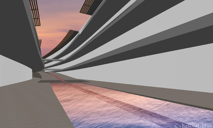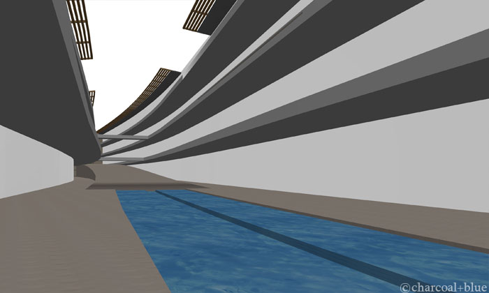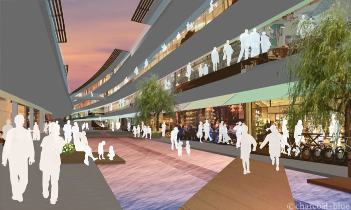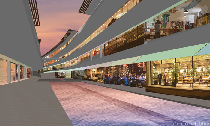 ずいぶん前に作画させていただいたコンペ用のパースですが、お打ち合わせなどで事例をお見せすると、良く目にとめていただくカットです。工程を紹介してみます。